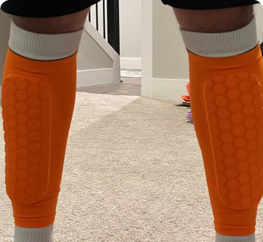 - Place le protège-tibia directement par-dessus la chaussette, bien centré sur le tibia.